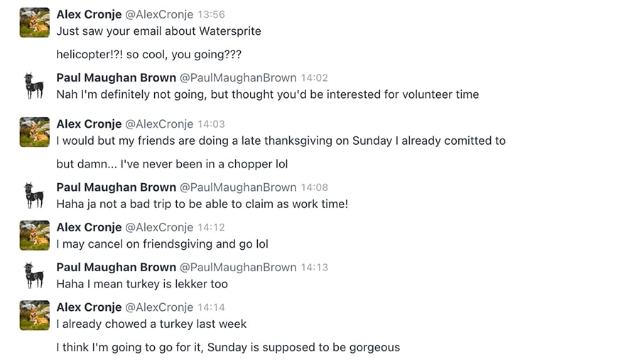 When your boss sends you an email at 1:44 p.m. on Friday regarding a free helicopter ride up to Watersprite Lake—you go.